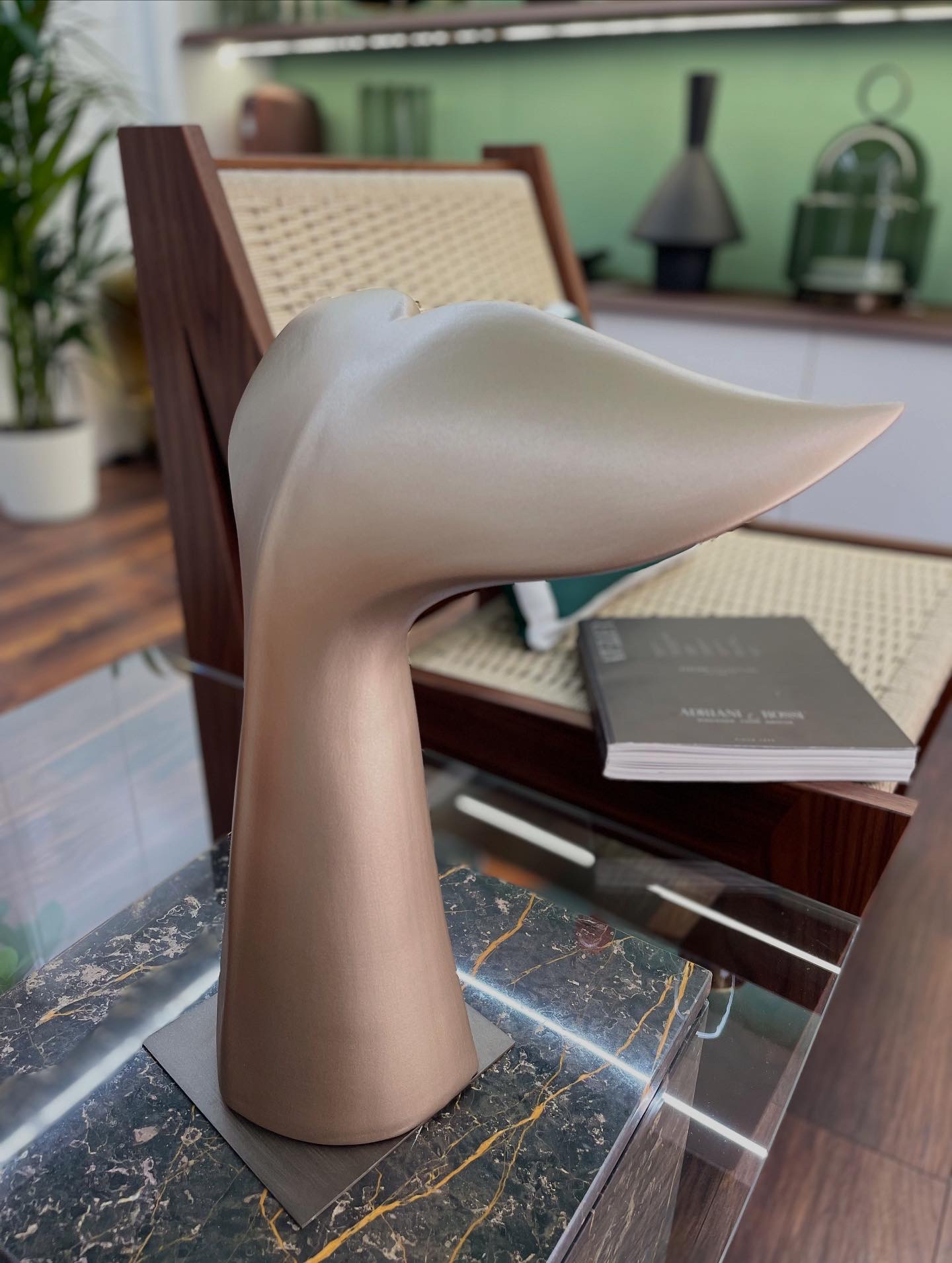 La collezione Moby di Adriani&Rossi offre una scultura di coda di balena in ceramica di colore champagne dal design moderno ed elegante