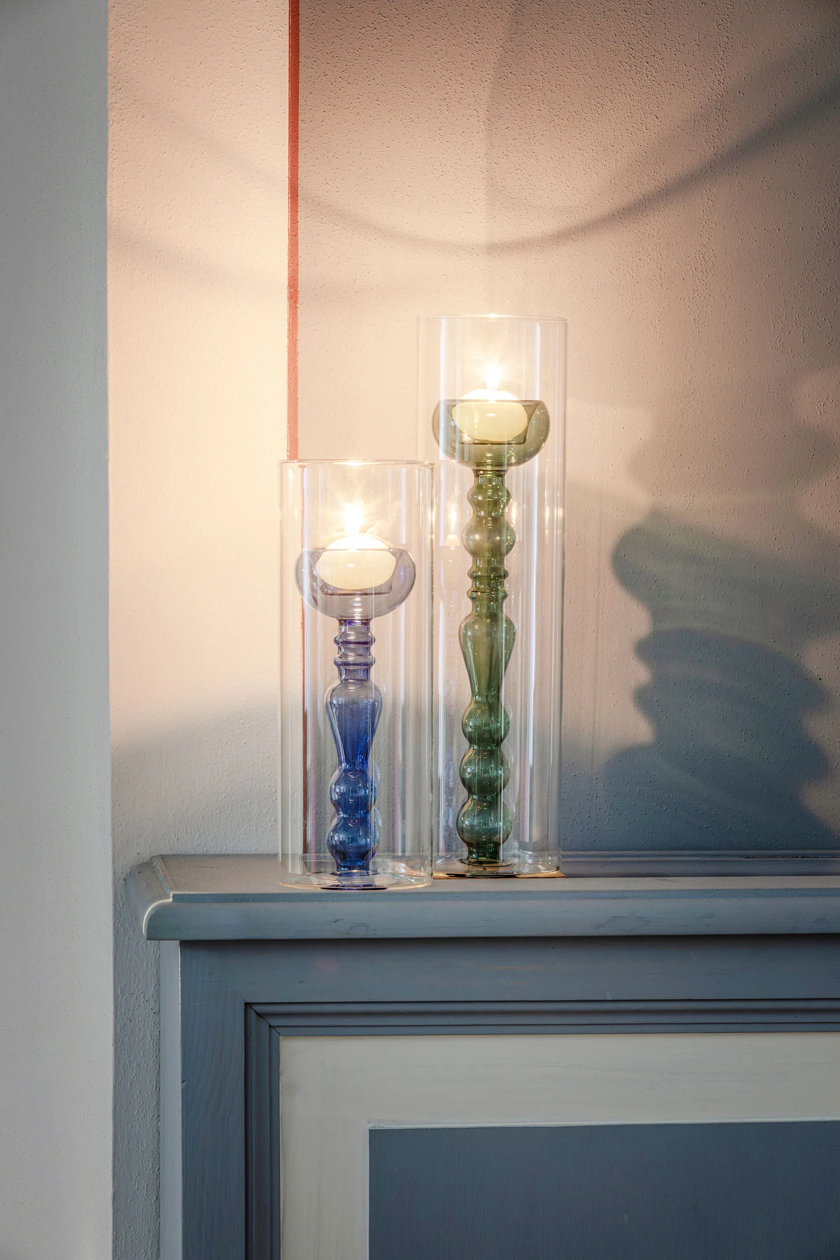 Il portacandela della collezione Immerso, realizzato in vetro borosilicato è un complemento d’arredo raffinato, pensato per creare atmosfere suggestive e accoglienti. Perfetto per decorare tavole, soggiorni o ambienti relax, è ideale sia come elemento singolo che in composizione con altri pezzi della stessa collezione.