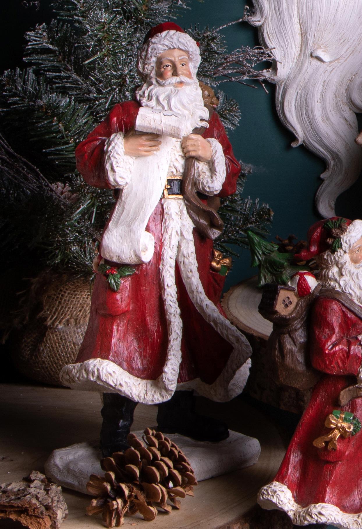 Babbo Natale in resina con pergamena, ricco di dettagli e finiture curate. Una decorazione elegante e festosa, perfetta per portare lo spirito del Natale in ogni ambiente, aggiungendo un tocco di magia e tradizione alla tua casa.